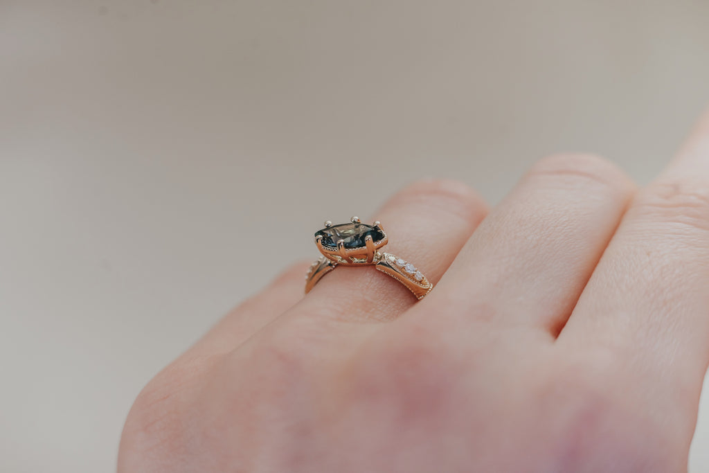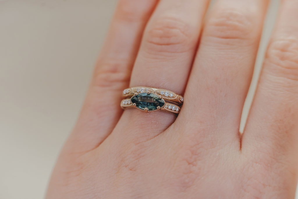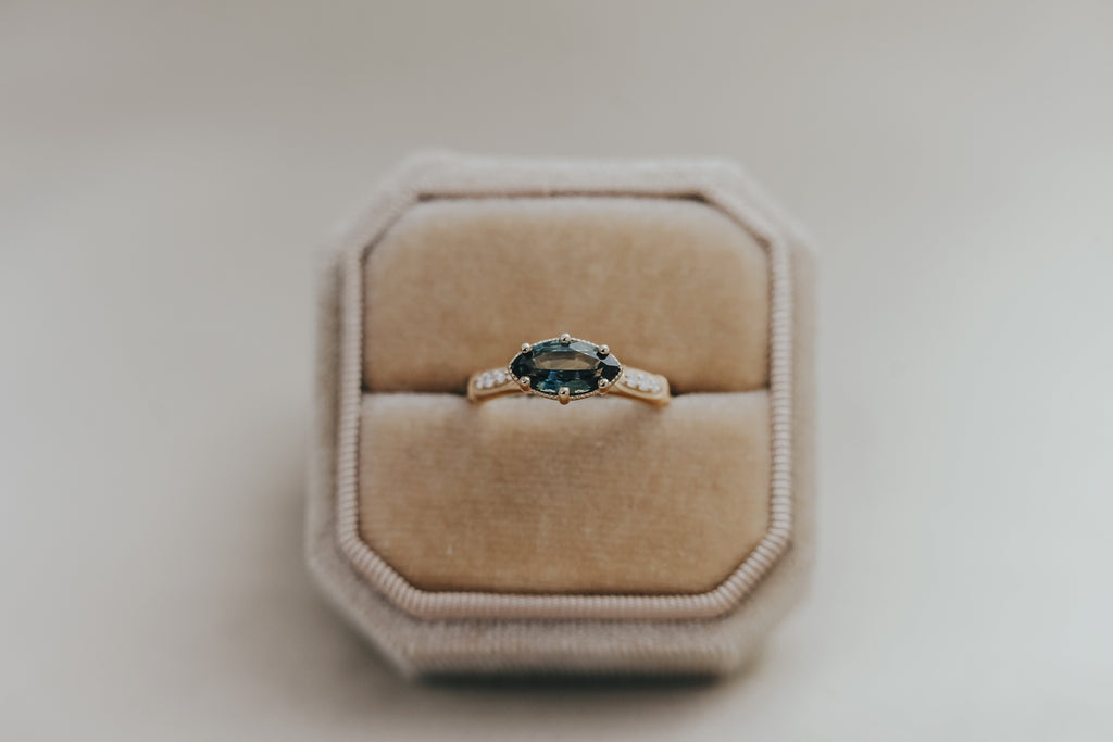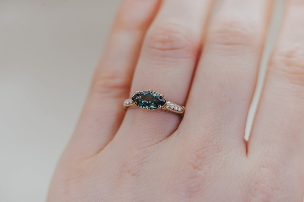 AVIGNON || Vintage-inspired engagement ring with Australian teal marquise sapphire